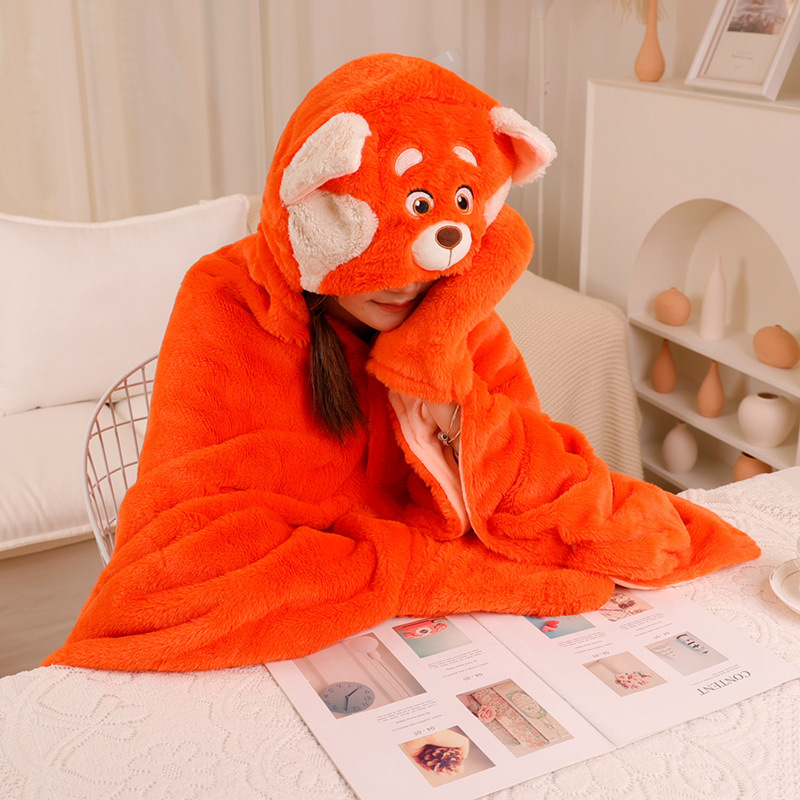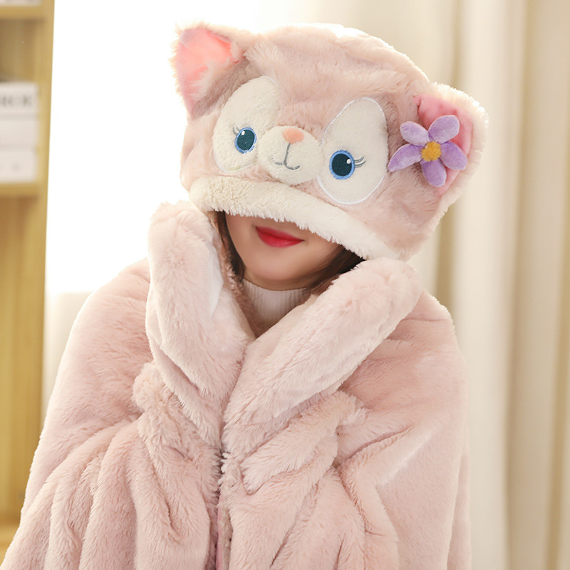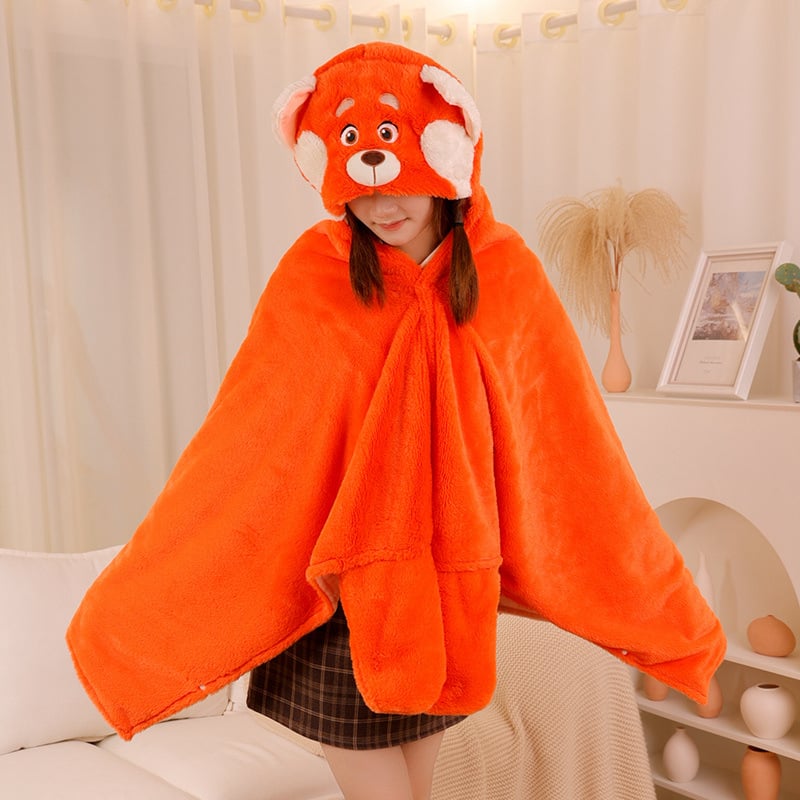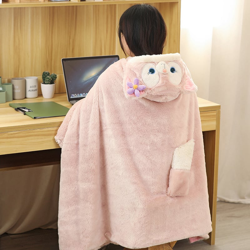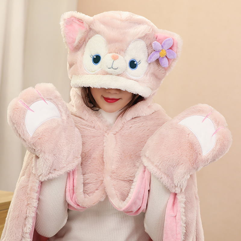 Fleece Fox Hooded Poncho Cape Cloak With Gloves