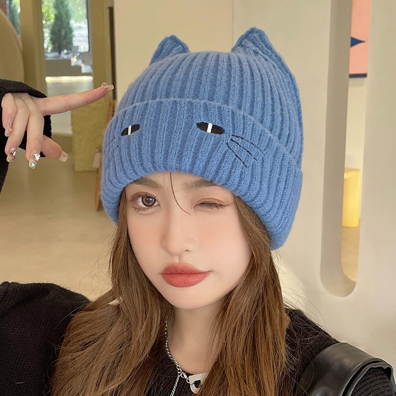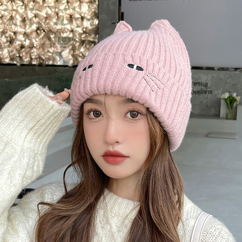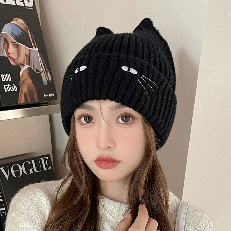 Cute Cat Embroidered Beanie Hat