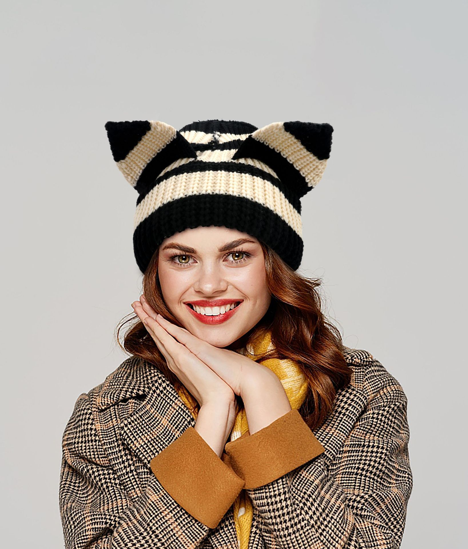 Purrfectly Adorable: Our Cat Ear Knitted Hat is a must-have for any cat lover. Crafted from soft, cozy knit fabric, this beanie keeps your head warm and stylish during chilly weather. The playful cat ears add a touch of whimsy, while the ribbed cuff provides a snug fit. Perfect for casual outings, winter adventures, or simply adding a feline flair to your everyday look.