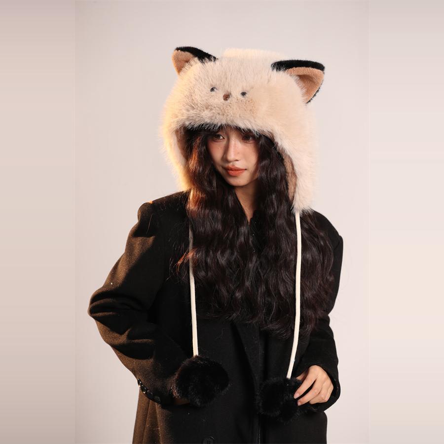 Fluffy Warm Cat Ear Hat Winter Protection Hat