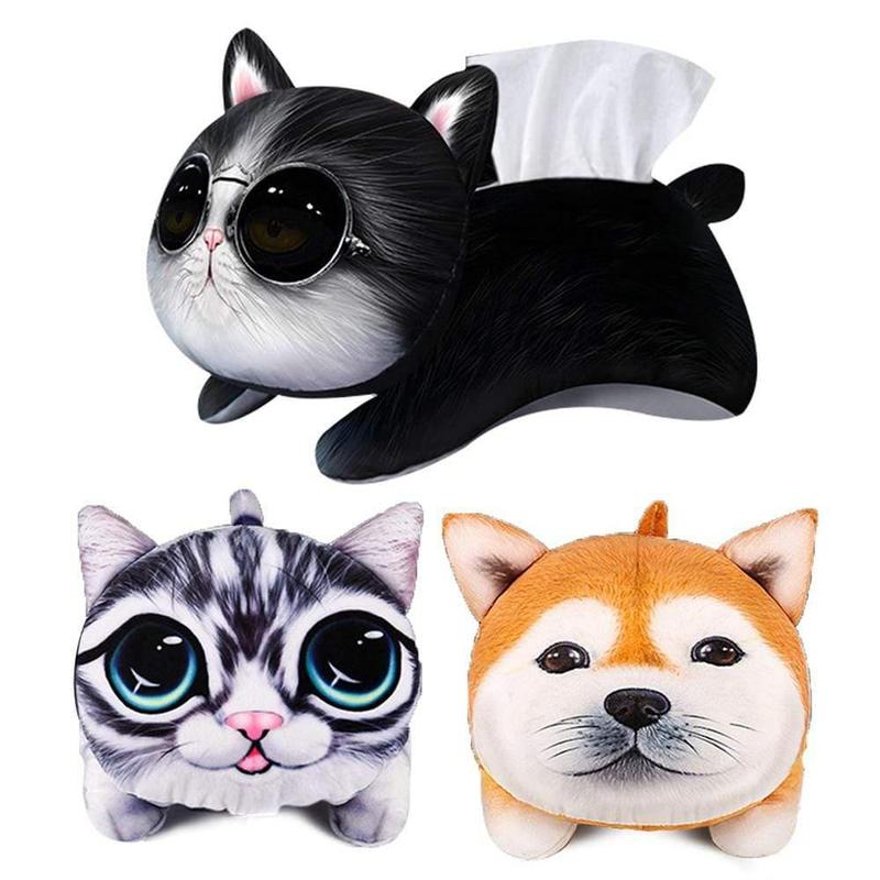 3D CUTE CAT & DOG PLUSH TISSUE BOX