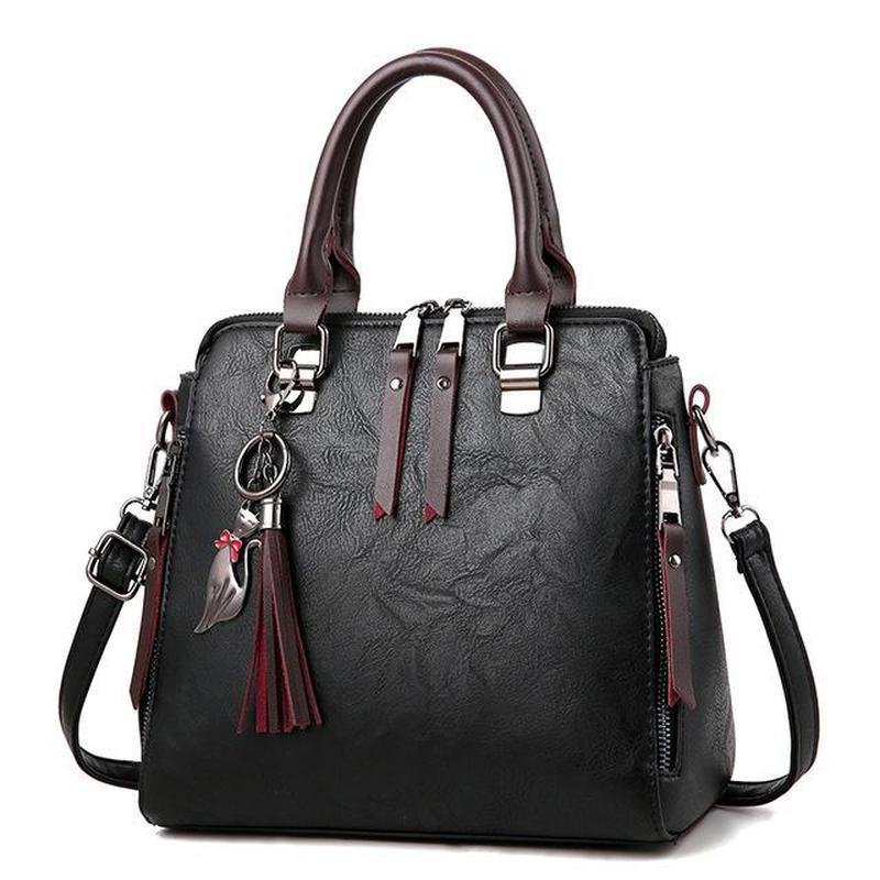 SUPERIOR LEATHER TASSEL CAT PENDANT HANDBAG