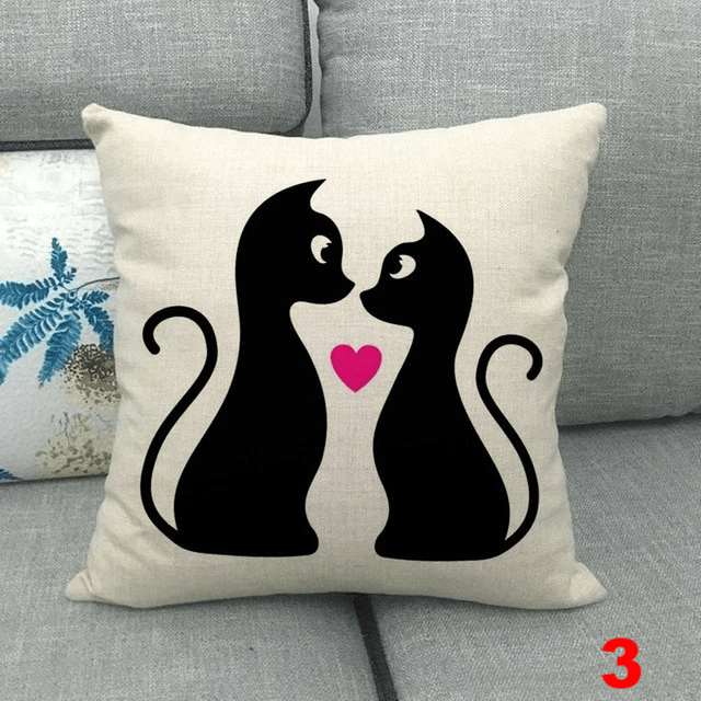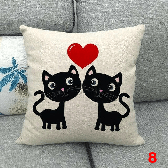CUTE LOVE CAT PRINTED CUSHION COVERS