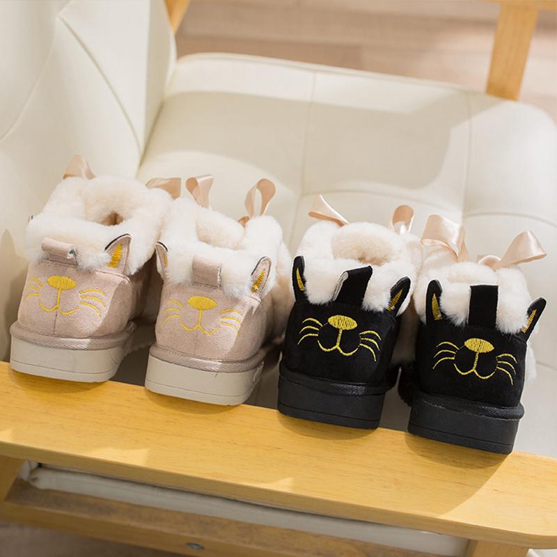 These adorable and feline Cute Cat Face Snowboots are the proper footwear to get through the cold winter. They feature synthetic fur and are made of suede leather and are super warm and comfy and have a sassy cat face smiling off the back of the shoes.