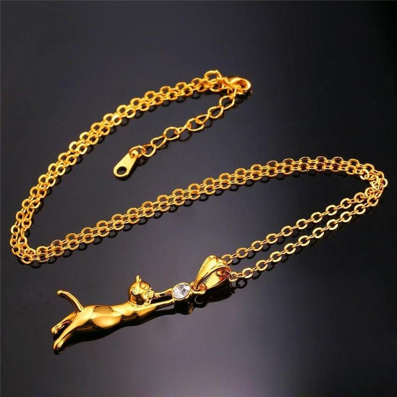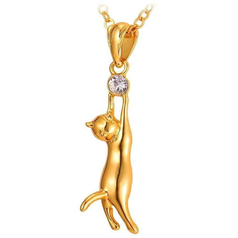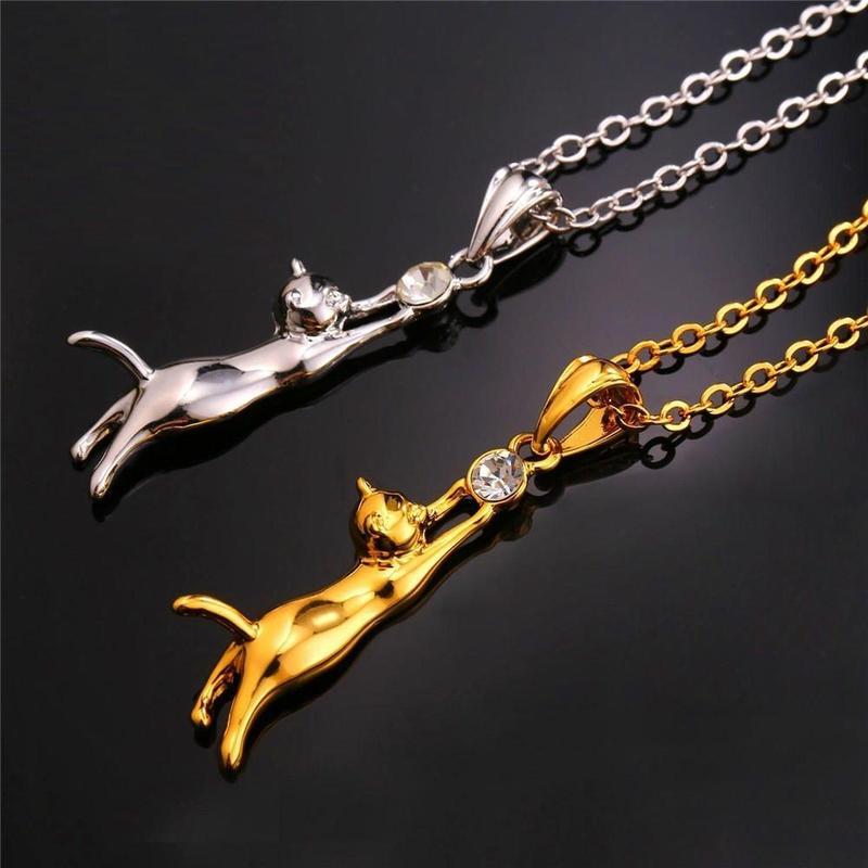 This ambitious cat is clearly aiming for the stars and looks to be getting there too! Plated in 18K gold or genuine platinum, this stunning necklace is embellished with a rhinestone for added sparkle.