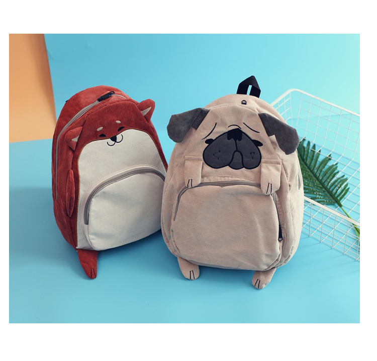 CUTE CARTOON DOG FOX CORDUROY BACKPACK