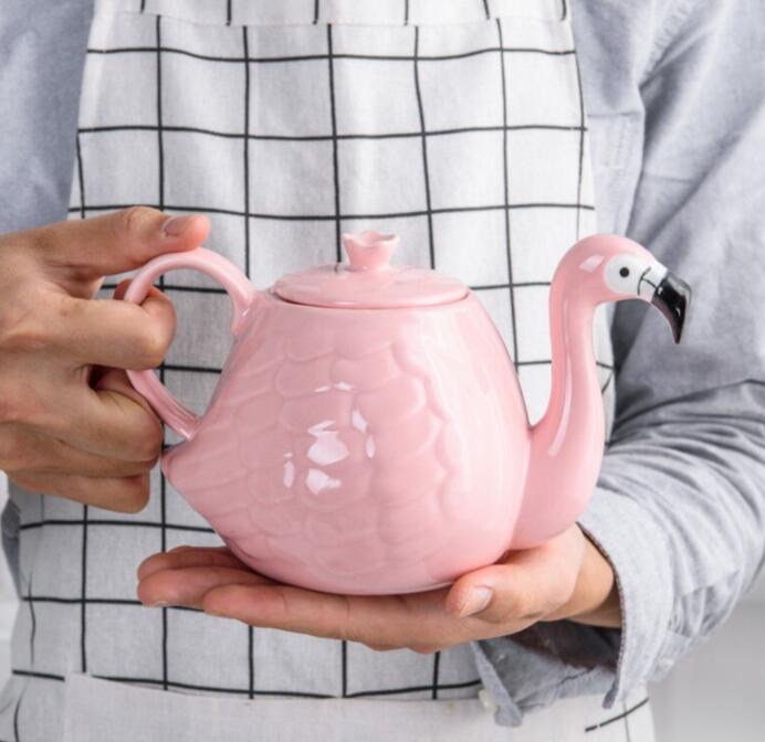 800ml 3D Flamingo pink ceramic Tea Coffee pot for drink or gift