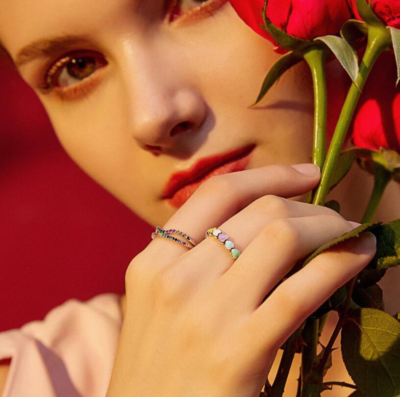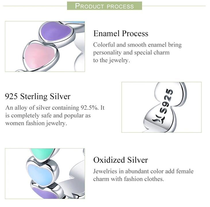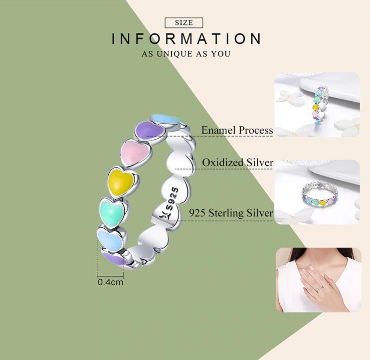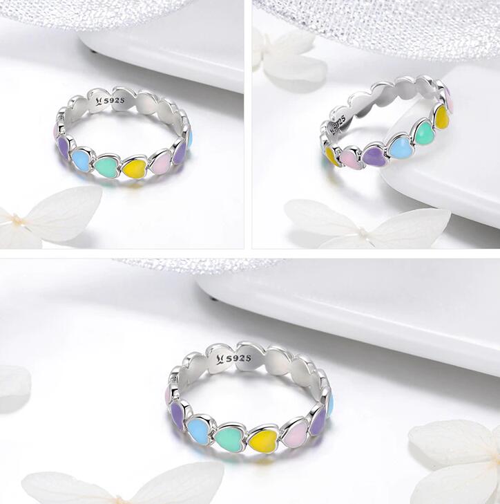 925 Sterling Silver Stackable Rainbow Heart Finger Rings