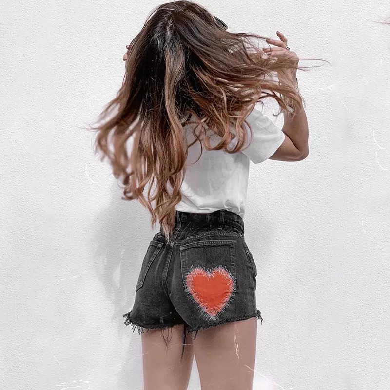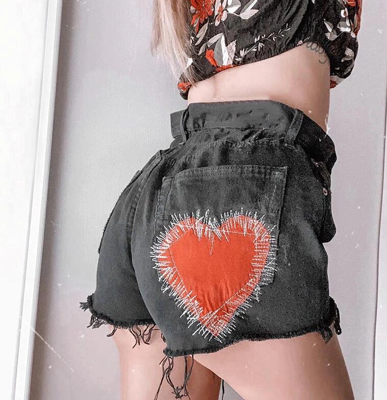 Heart Embroidery Denim Shorts