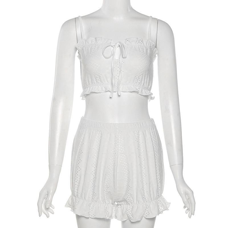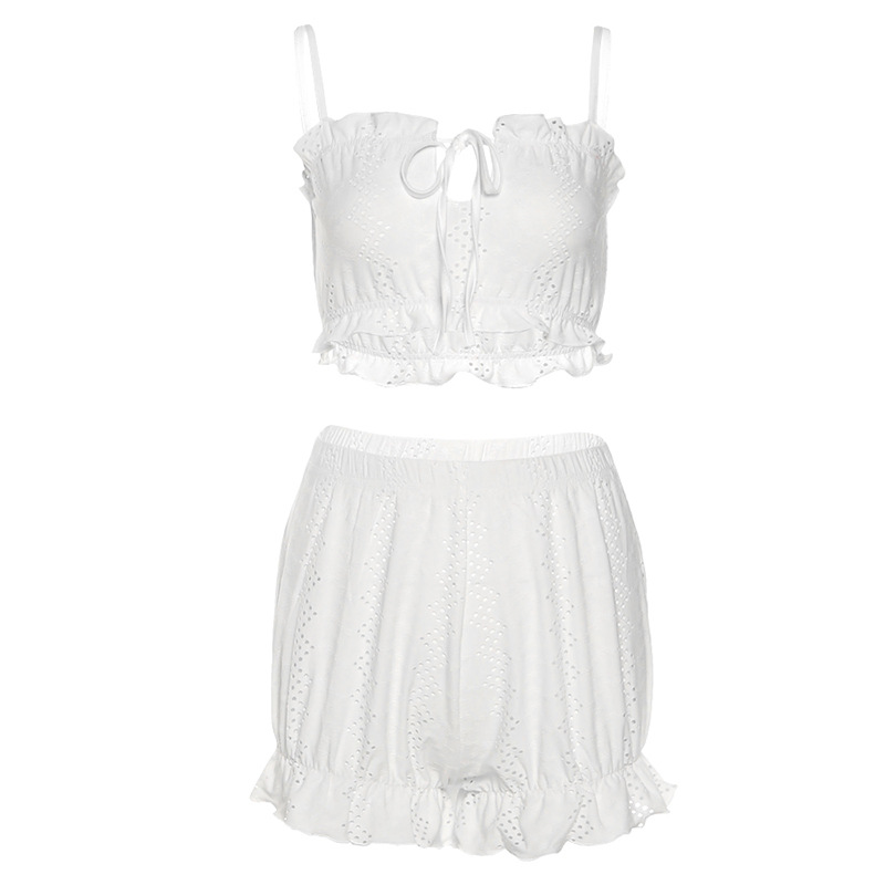 Cute White Top And Shorts Set