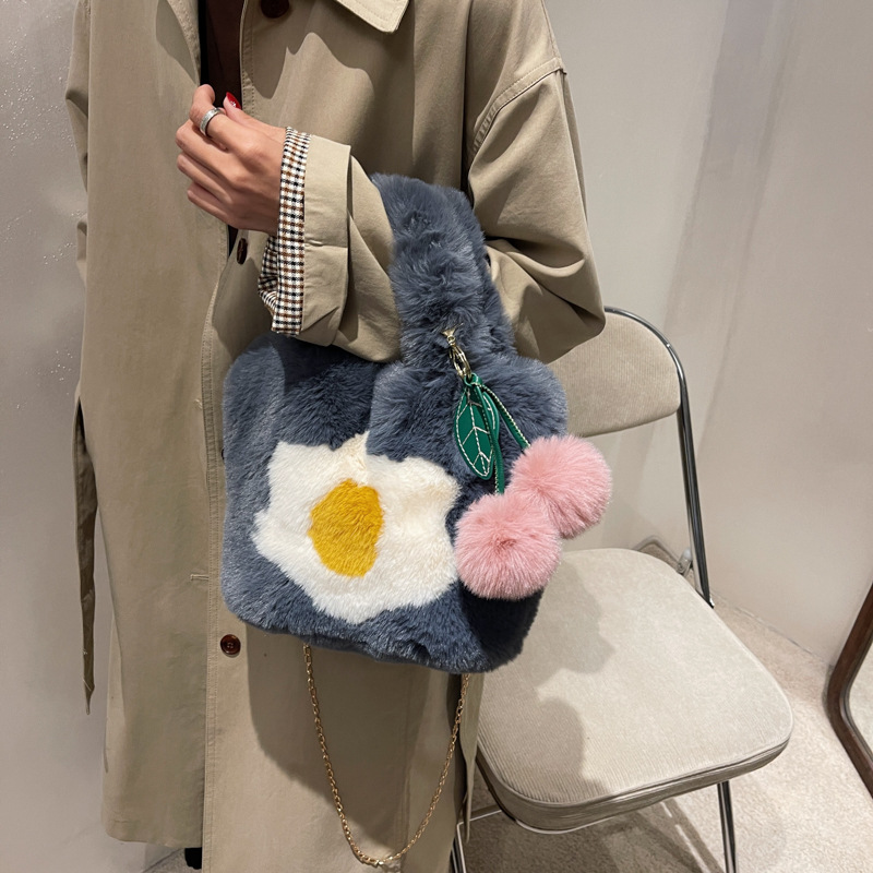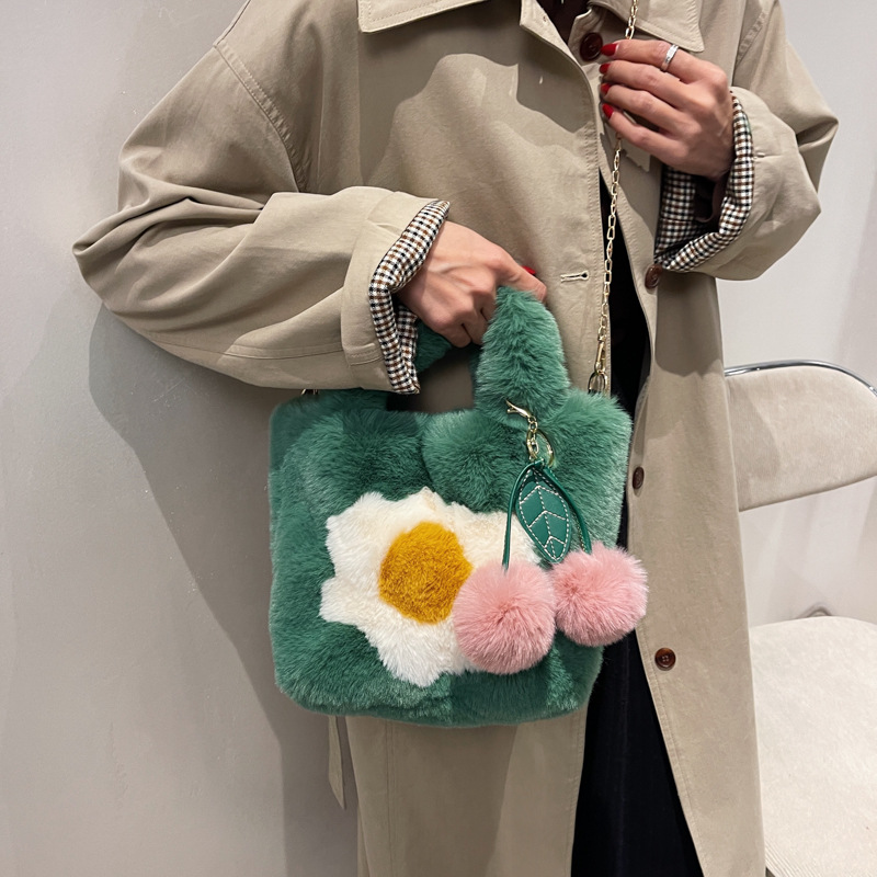 Fuzzy Egg Pattern Tote Bag With Cherry Pendant