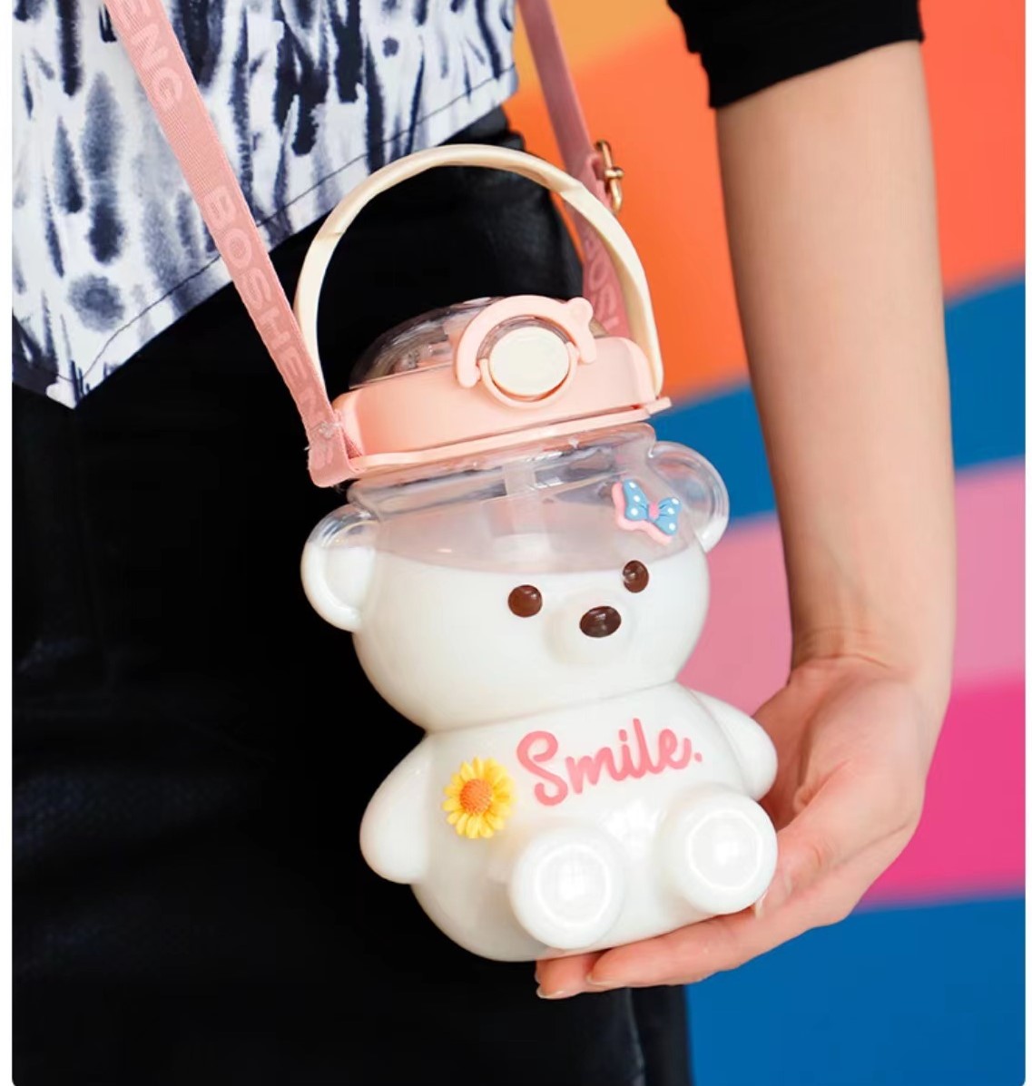 cute bear water cup large-capacity straw cup summer girl water bottle