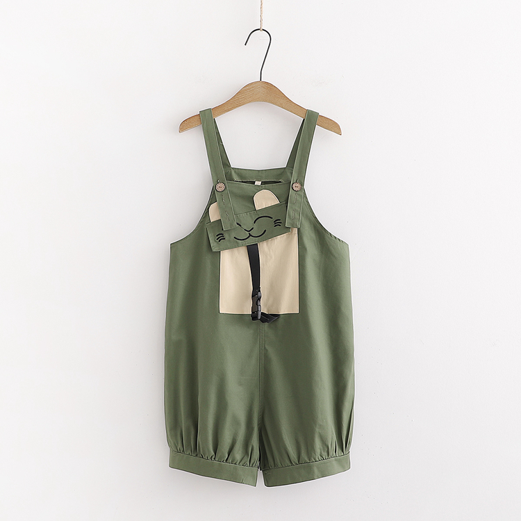 Cute Pocket Cat overall pants With T-shirt two-piece Suit