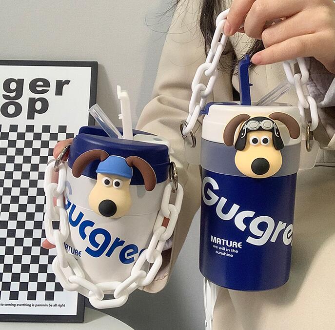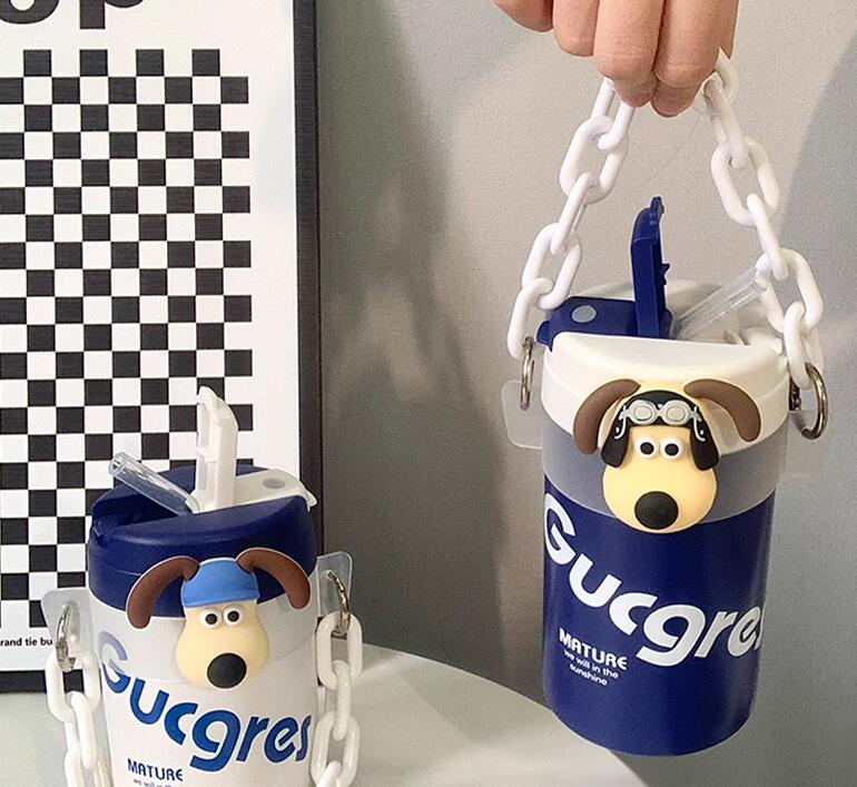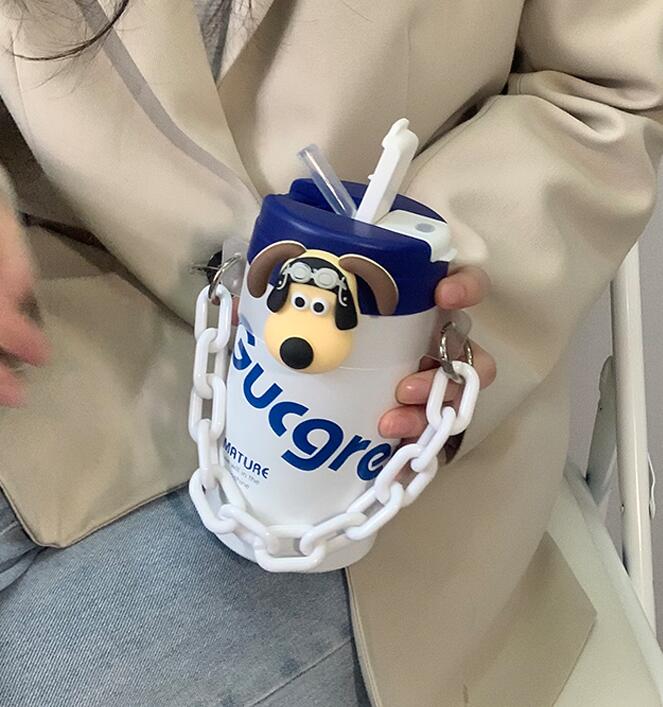 Cute Dog Decor Insulation Cup With Straw