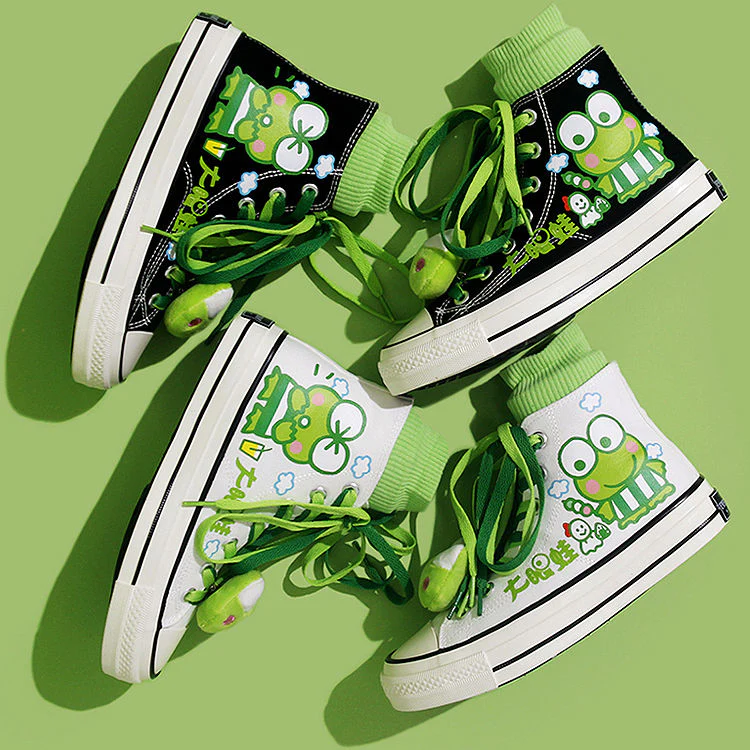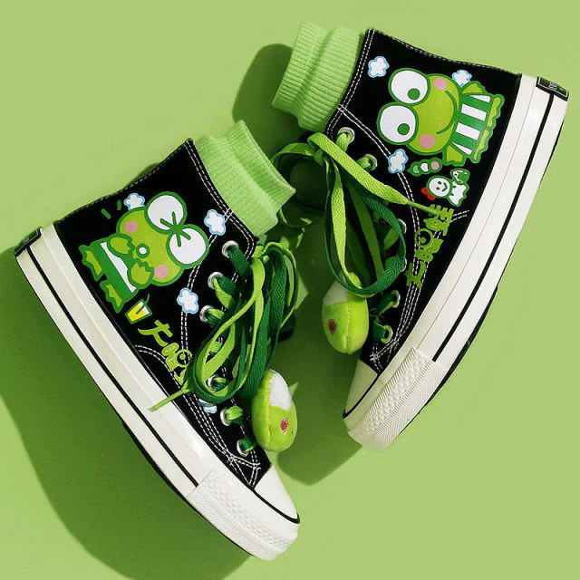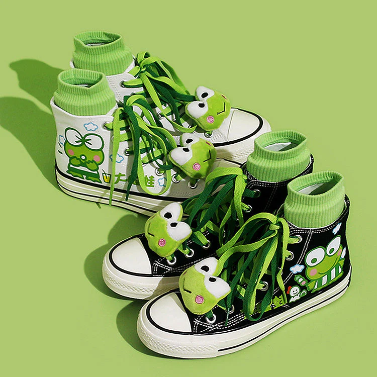 CUTE FROG HAND PAINTED HIGH TOP SHOES