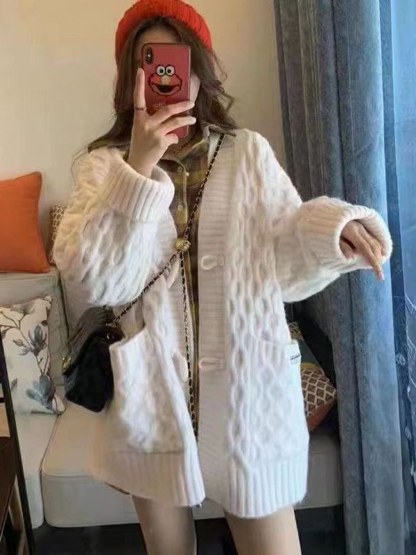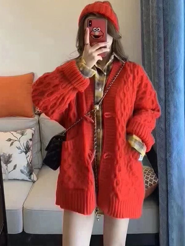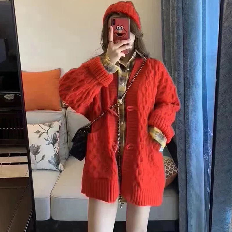 Fit: Loose type Collar: Half-open collar Style: Cardigan Color: Off-white, Kleinland, Christmas Red Size: One size fits all, Shoulder width 52 cm, length 70 cm, chest circumference 115 cm, sleeve length 48cm