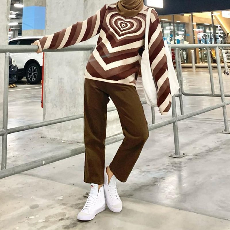 Rainbow Love Sweater Vintage Half Turtleneck Women's Pullover