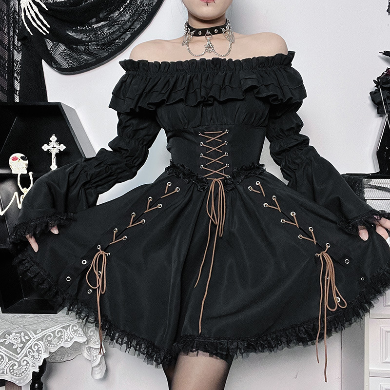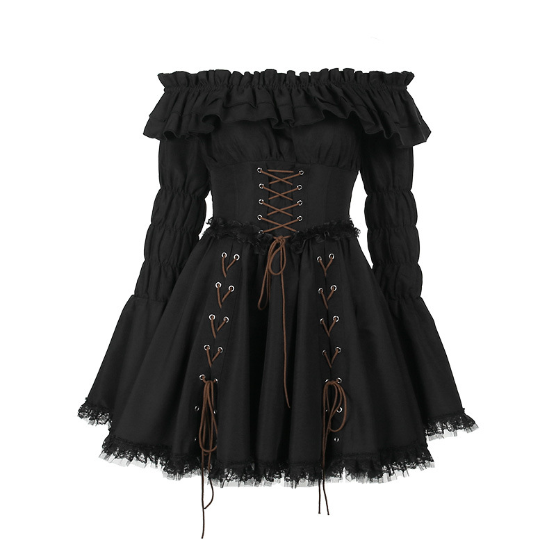 Skirt Type: Fairy Dress Sleeve Length: Long Sleeves Craft: Collage/stitching Collar: One Word Collar Waist Shape: High Waist Body Fabric Composition: Polyester Style: Elegant Style Size: S, M, L