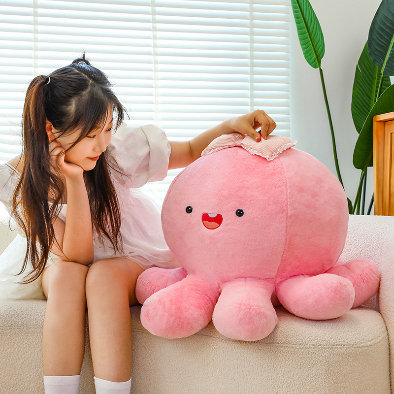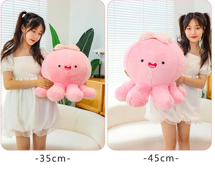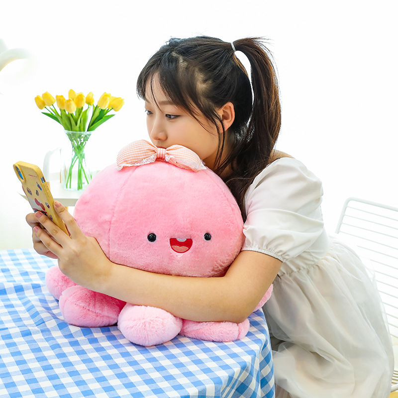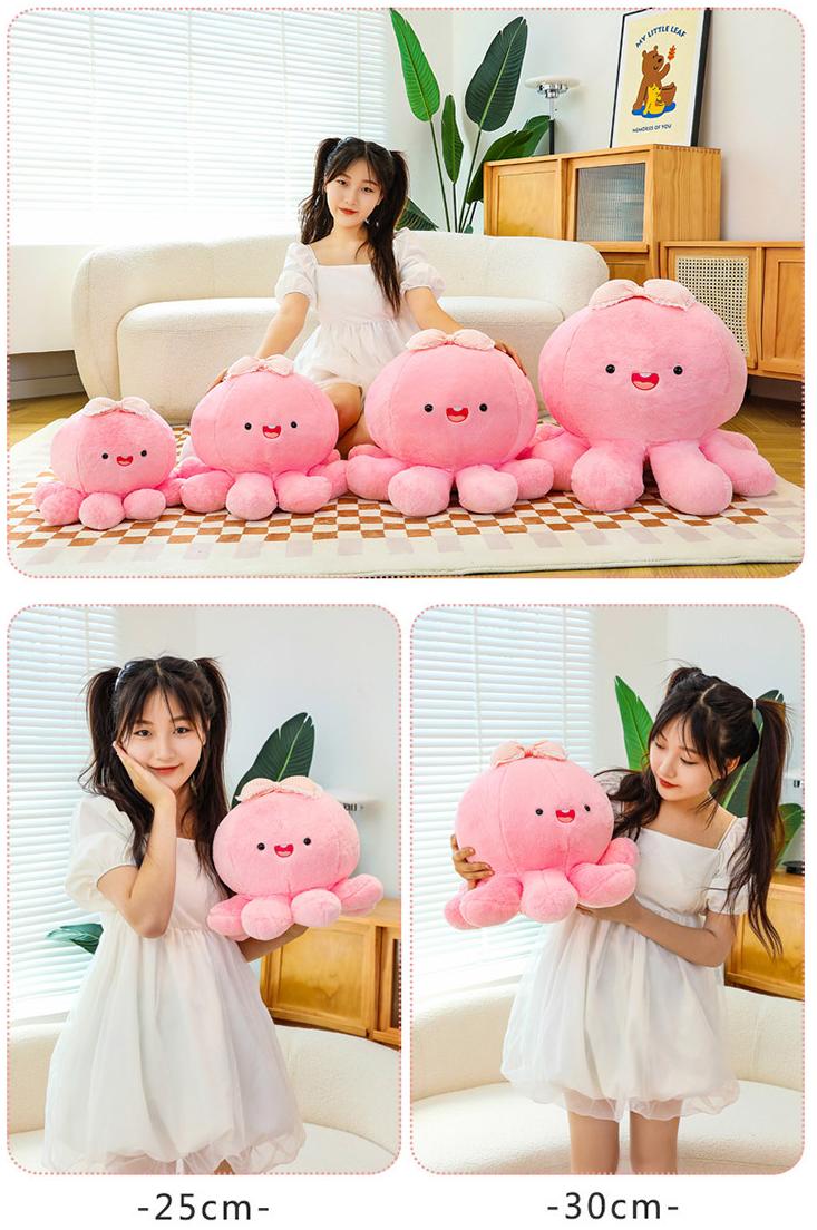 Dive into a sea of sweetness with our Pink Octopus Plush Toy! This charming cephalopod features a delightful smiley face and an adorable bowknot on top, adding a touch of whimsy to its underwater charm. Crafted with soft and huggable materials, our Pink Octopus Plush is the perfect cuddle companion. Bring a smile to your face and a bow of joy with our irresistible Pink Octopus Plush Toy – because every hug should be as cute as it is cuddly!BR>