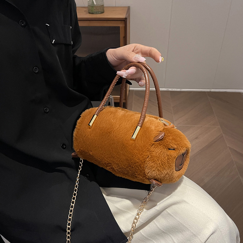 Carry your essentials in adorable style with this cuddly capybara plush handbag! So soft and huggable, it's the perfect accessory for any animal lover.