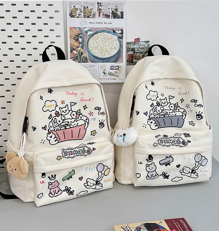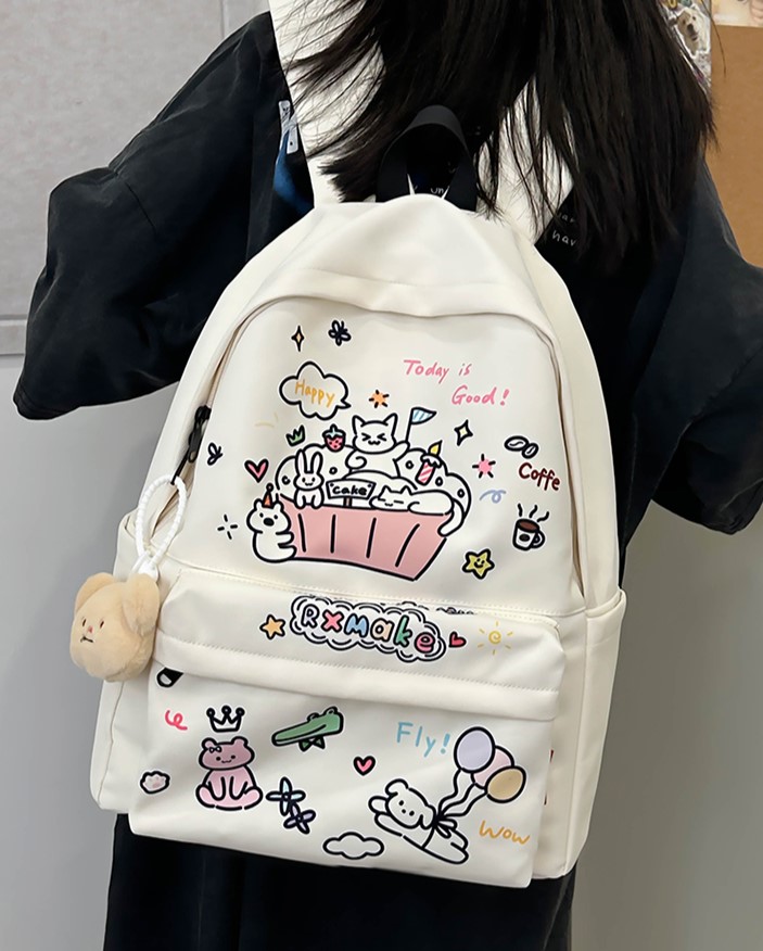 Cute Cartoon Cat Graffiti Print Bakcpack