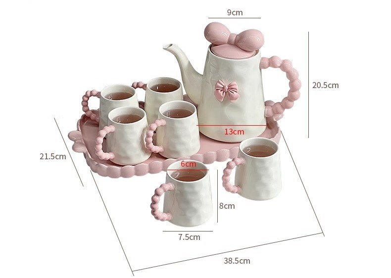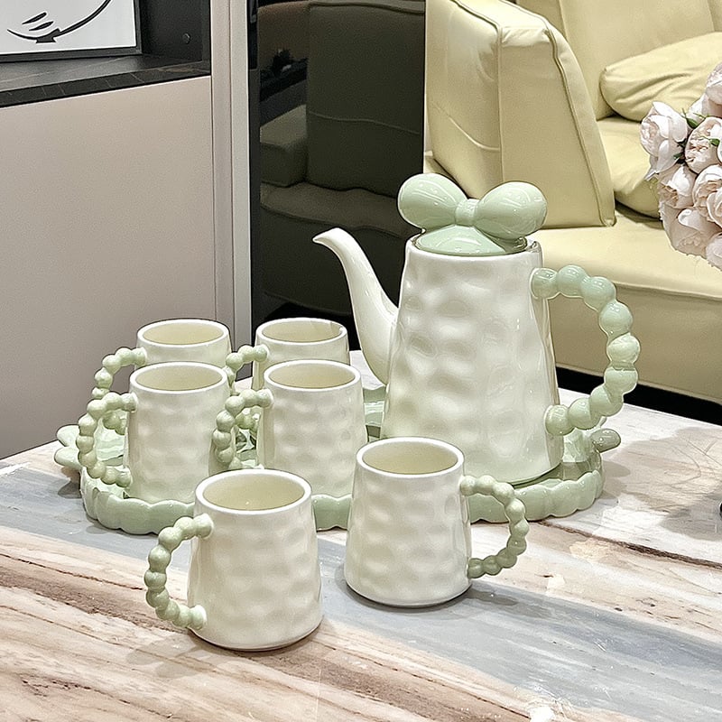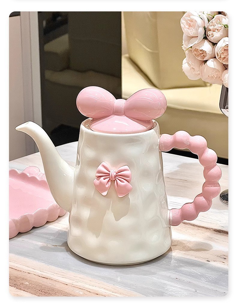 Sweet Bowknot Ceramic Tea Pot Mug Set
