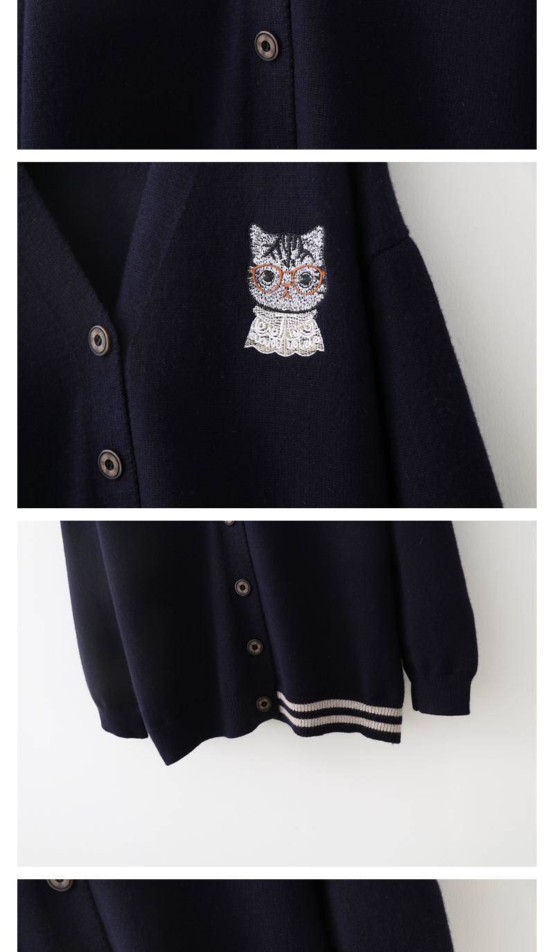 Purrfectly adorable! This cozy cardigan is the ultimate blend of comfort and style. Featuring a charming cat embroidery on the front, it adds a playful touch to any outfit. The V-neckline and relaxed fit offer a flattering silhouette, while the soft knit fabric keeps you warm and snug. Perfect for layering over your favorite tops or dresses, this cardigan is a must-have for cat lovers and fashion enthusiasts alike.