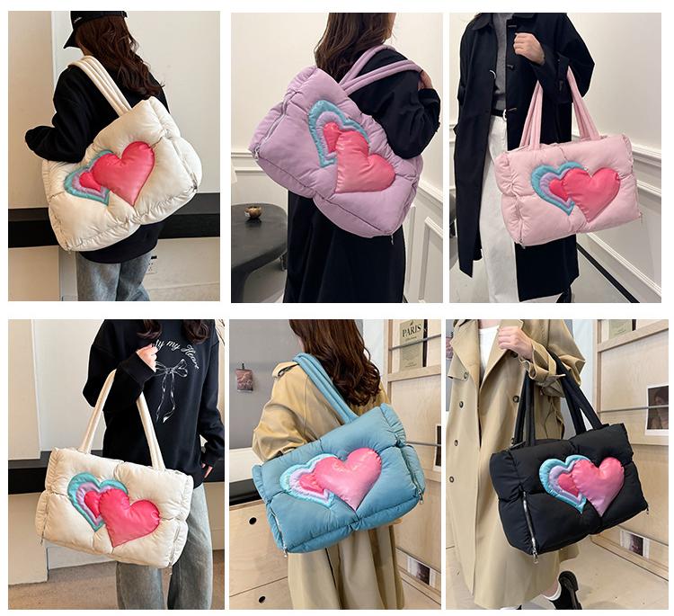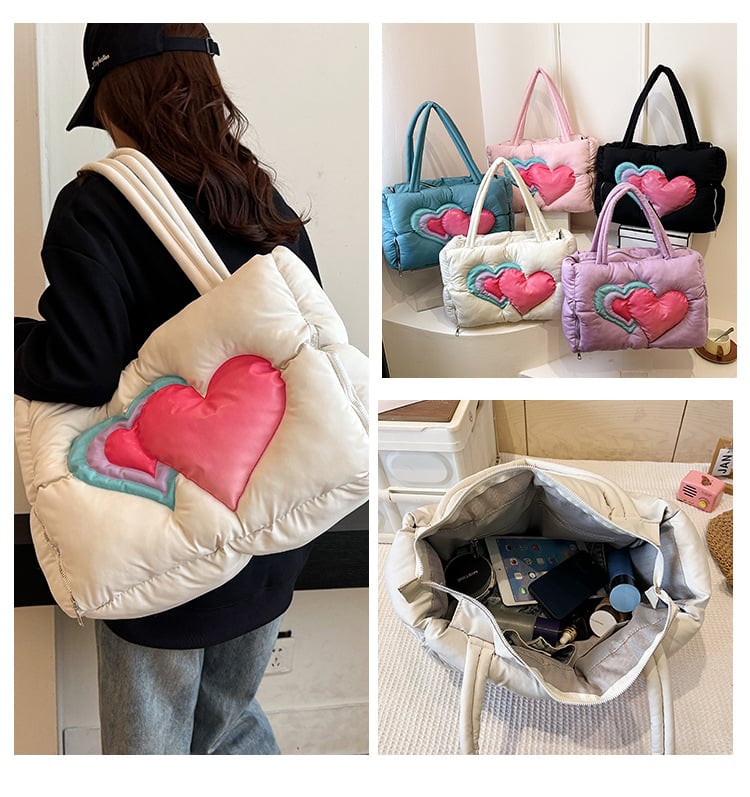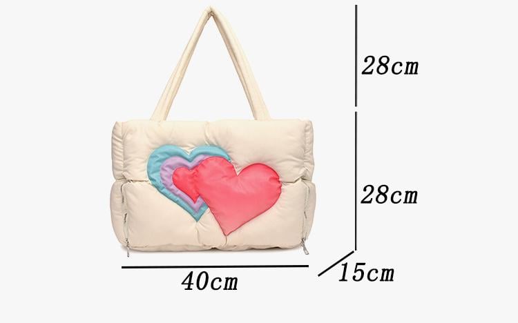 Cute Love Heart Puffer Tote Bag Handbag