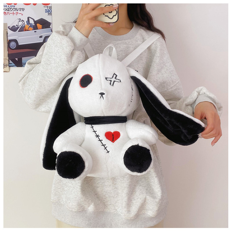 More than just a plushie, it’s a functional backpack ready to carry your essentials. Perfect for adding unique flair to any alternative outfit, this rabbit blends spooky and sweet effortlessly. Carry your necessities with delightfully dark style and make a statement wherever you hop.