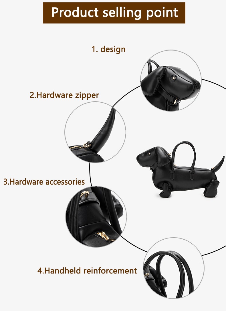 Carry your essentials in style with our adorable Black Dachshund Dog Bag. This sleek and charming bag features a silhouette of the beloved wiener dog, perfect for showing off your canine passion. Compact yet spacious enough for your daily necessities, it's a delightful accessory for any dog enthusiast. Crafted with durable materials and a touch of whimsy, this bag is sure to turn heads and wag tails wherever you go. Get yours today and let your love for Dachshunds shine!