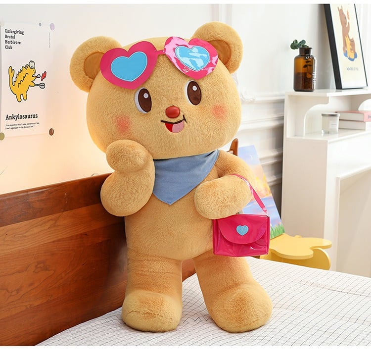 Meet your new favorite accessory: the Fashion Bear Plushie! This adorable bear isn't just soft and cuddly; it's a trendsetter. Sporting chic fuchsia heart-shaped sunglasses and a trendy mini handbag, this plushie is ready for any adventure. Crafted from premium, huggable material, it's perfect for play, display, or as a unique gift. Get your fashion-forward companion today!