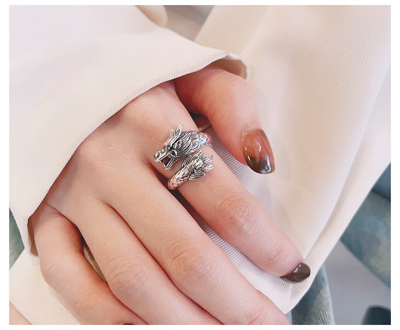 A bold, three-dimensional dragon totem wraps around your finger, showcasing a unique and powerful design. This heavy-edition ring captures the essence of ancient style and the national trend, making it a standout accessory. Made with high-quality sterling silver, it's perfect for those who appreciate intricate craftsmanship and symbolic jewelry. Wear a piece of history and legend.
